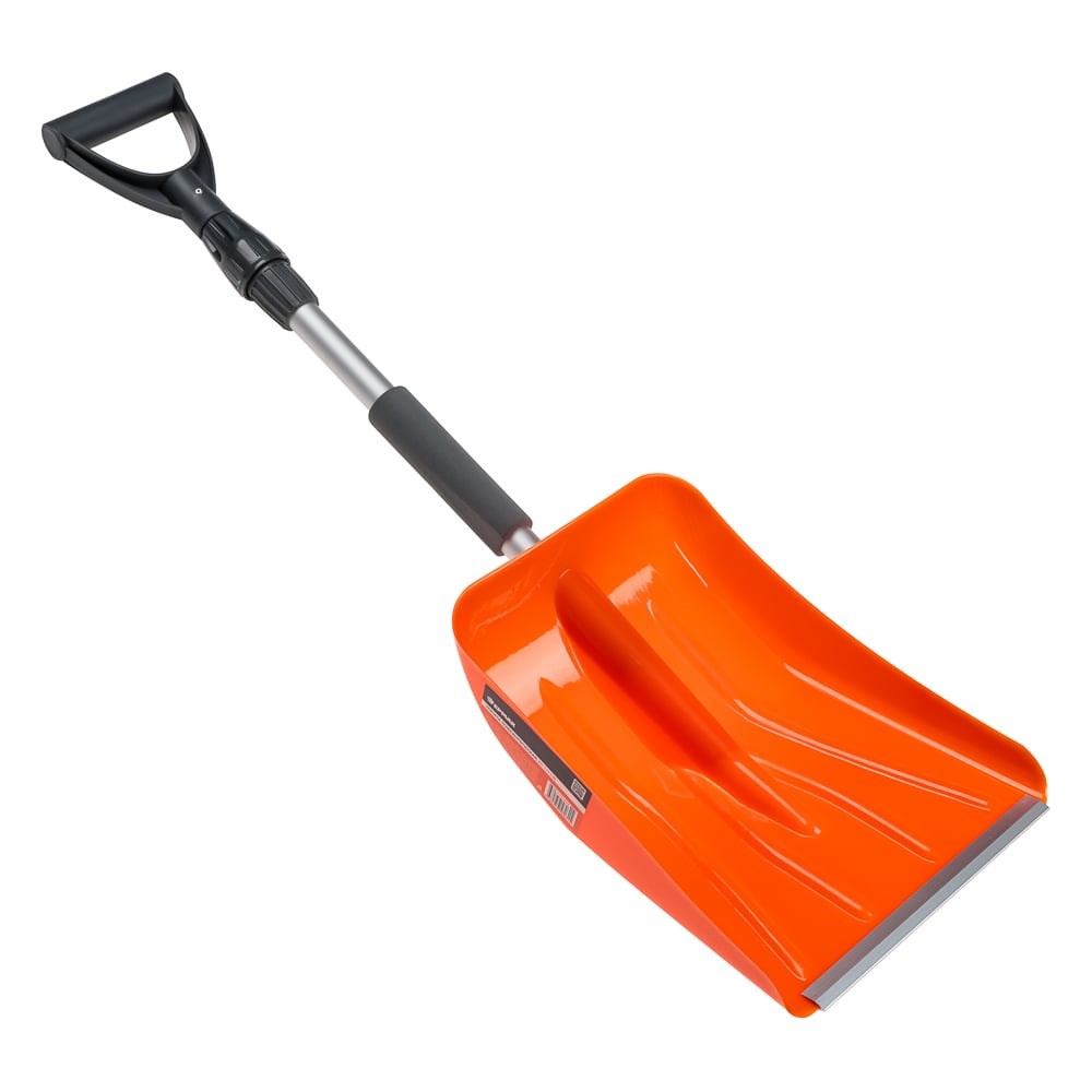 Лопата снегоуборочная из прочного пластика с прочной телескопической алюминиевой ручкой и ковшом, оборудованным ледорубом. Станет незаменимым помощником для любого автомобилиста. В сложенном виде имеет длину 85 см, благодаря чему помещается в багажник любого автомобиля. При необходимости, длину ручку можно увеличить до 111 см. Удобный угол наклона ковша спроектирован так, чтобы сделать использование лопаты более комфортным и удобным. Прочность ковшу придает конструкция рёбер жесткости, а металлическая планка из алюминия легко справится со льдом и жестким снегом. Качественный плотный пластик, из которого изготовлена лопата, не боится перепадов температуры и интенсивной эксплуатации.