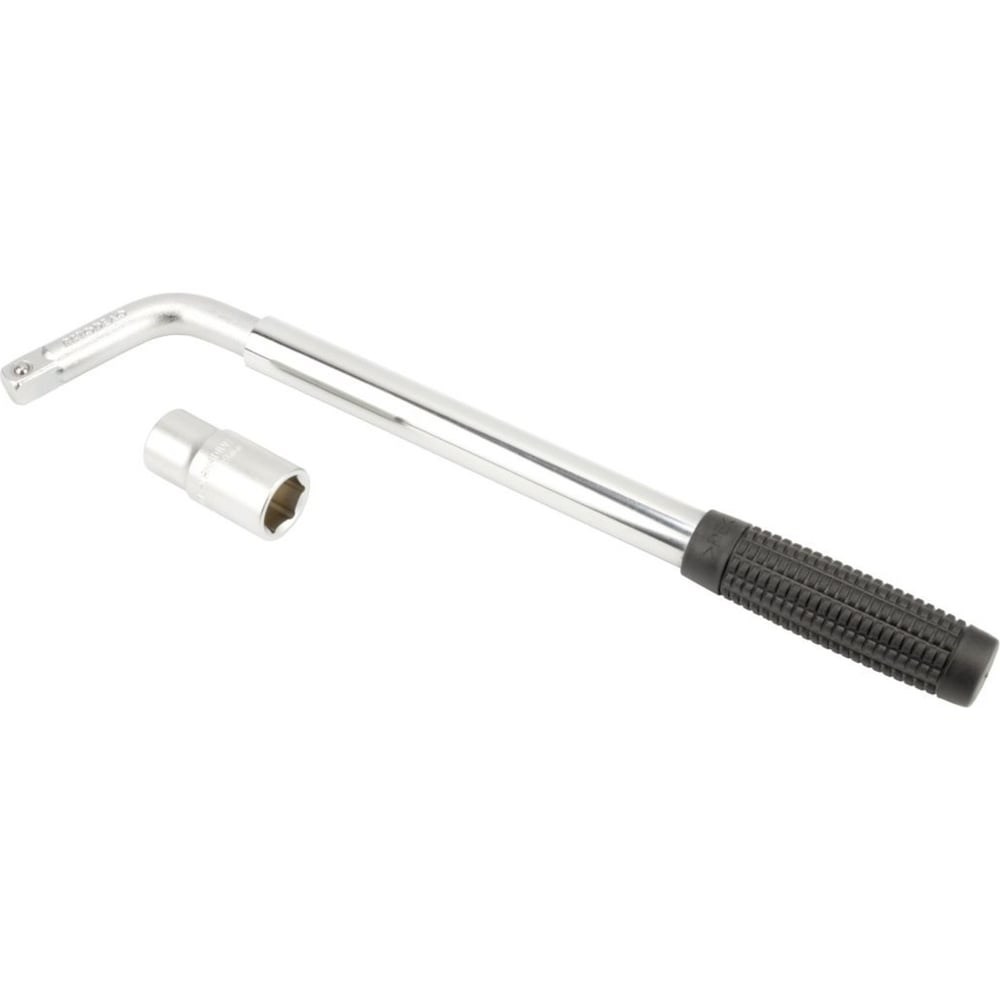 Баллонный телескопический ключ Автоdело 21х22, 360х510 мм 34321 13805 подходит для обслуживания транспортных средств в гараже или профессиональной мастерской. Инструмент позволяет качественно зафиксировать или демонтировать крепления автомобильных колес. Инструмент выполнен из качественной хромованадиевой стали, изготовленной методом горячей штамповки. Это обеспечивает высокую прочность и долговечность инструмента. Хромоникелевое покрытие защищает инструмент от коррозии. Ключ имеет посадочный квадрат 1/2 дюйма. Складная конструкция ключа позволяет удобно транспортировать инструмент. Телескопическая рукоятка удлиняет плечо до 530 мм. Рельефная рукоять эргономичной формы с нескользящим покрытием обеспечивает комфортную работу с инструментом.