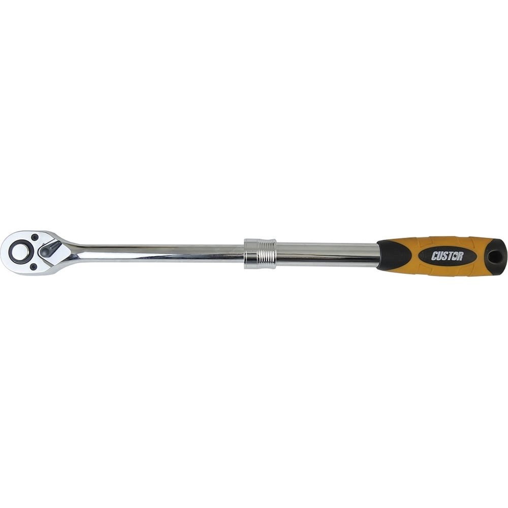 Ключ трещоточный телескопический CUSTOR 1/2" (артикул RH-D85448) — это профессиональный ручной инструмент, сочетающий функциональность трещотки с возможностью увеличения рычага для приложения высокого крутящего момента.
