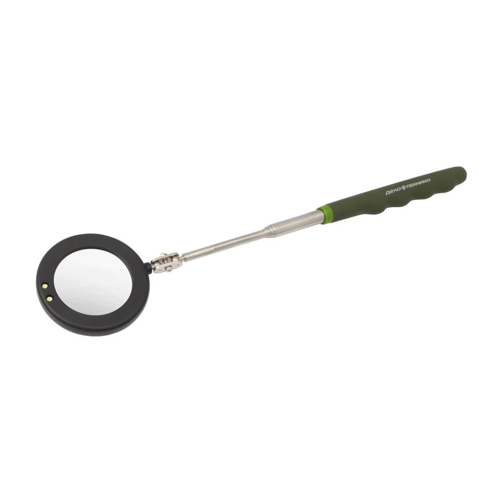 Телескопическое зеркало Дело Техники Ø75 мм с подсветкой 837077 представляет собой качественный вспомогательный инструмент для осмотра, диагностики и работ в условиях ограниченного пространства. Шарнир позволяет выставить необходимый угол зеркала, а телескопическая конструкция обеспечивает доступ к самым труднодоступным местам. Подсветка избавляет от необходимости дополнительно освещать осматриваемую деталь.