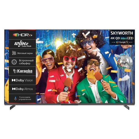 Телевизор SKYWORTH 55X85G, 55" (140 см), QD-Mini LED, 3840x2160, 4K, 16:9, Google TV, Wi-Fi, караоке, черный