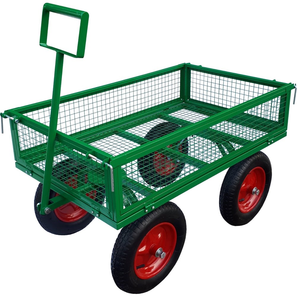 Тележка с откидными бортами SADOVODCART САДОВОД SAD44104 - удобное дополнение для прочего садового инвентаря. Прочная рамная конструкция способна выдержать до 200 килограммов прямой нагрузки. Простота разгрузки позволит более быстро работать при перевозке грузов.