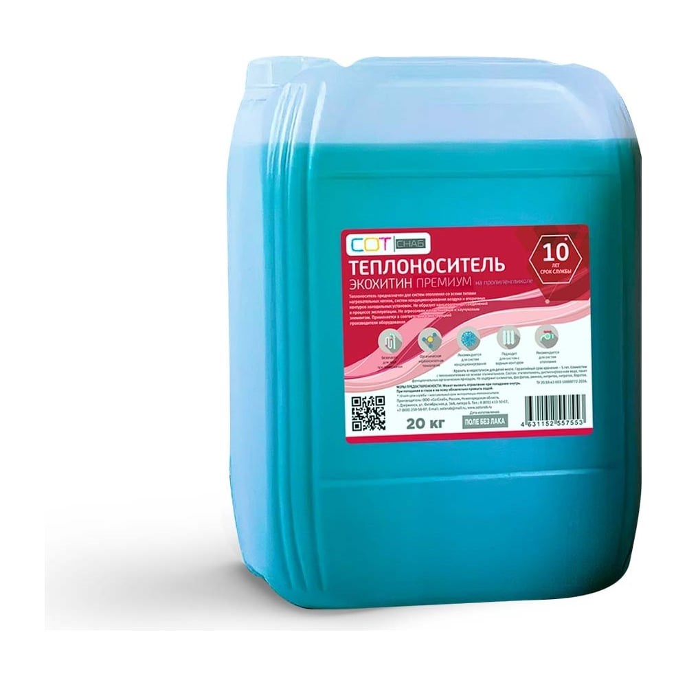 Теплоноситель СОТСНАБ Экохитин Премиум -30 - это теплоноситель на основе безопасного пропиленгликоля, который способен работать при температуре до -30 градусов Цельсия. Безопасен для здоровья человек и окружающей среды. Экохитин Премиум обладает высокой стабильностью и долговечностью, что делает его идеальным выбором для использования в системах, работающих при низких температурах. Он обеспечивает эффективную передачу тепла и защищает систему от замерзания и коррозии. Заключение: Продукт соответствует ТУ 20.59.43-003-58888772-2016 Гарантийный срок хранения 5 лет в таре производителя при соблюдении условий транспортирования и хранения. Хранить в герметичной заводской упаковке в хорошо проветриваемом помещении, обеспечивающем защиту от воздействий солнечных лучей и атмосферных осадков. Срок эксплуатации раствора до 10 лет. Раствор не токсичен и безопасен для окружающей среды. Сертификат соответствия №РОСС RU.З2001.04ИБФ1.ОСП28.33320 Декларация о соответствии ЕАЭС N RU Д-RU.PА03.В.71957/23 Товарный знак СотСнаб зарегистрирован в Государственном реестре товарных знаков и знаков обслуживания за № 784934 от 23. ноября 2020г. Сертификат ИСО рег №VCS-IST.SS.RU0547.11.20 Паспорт составлен на основании протокола испытаний № 68/23 от 24.07.2023г., выданного испытательной лабораторией №RA.RU.21AB08.