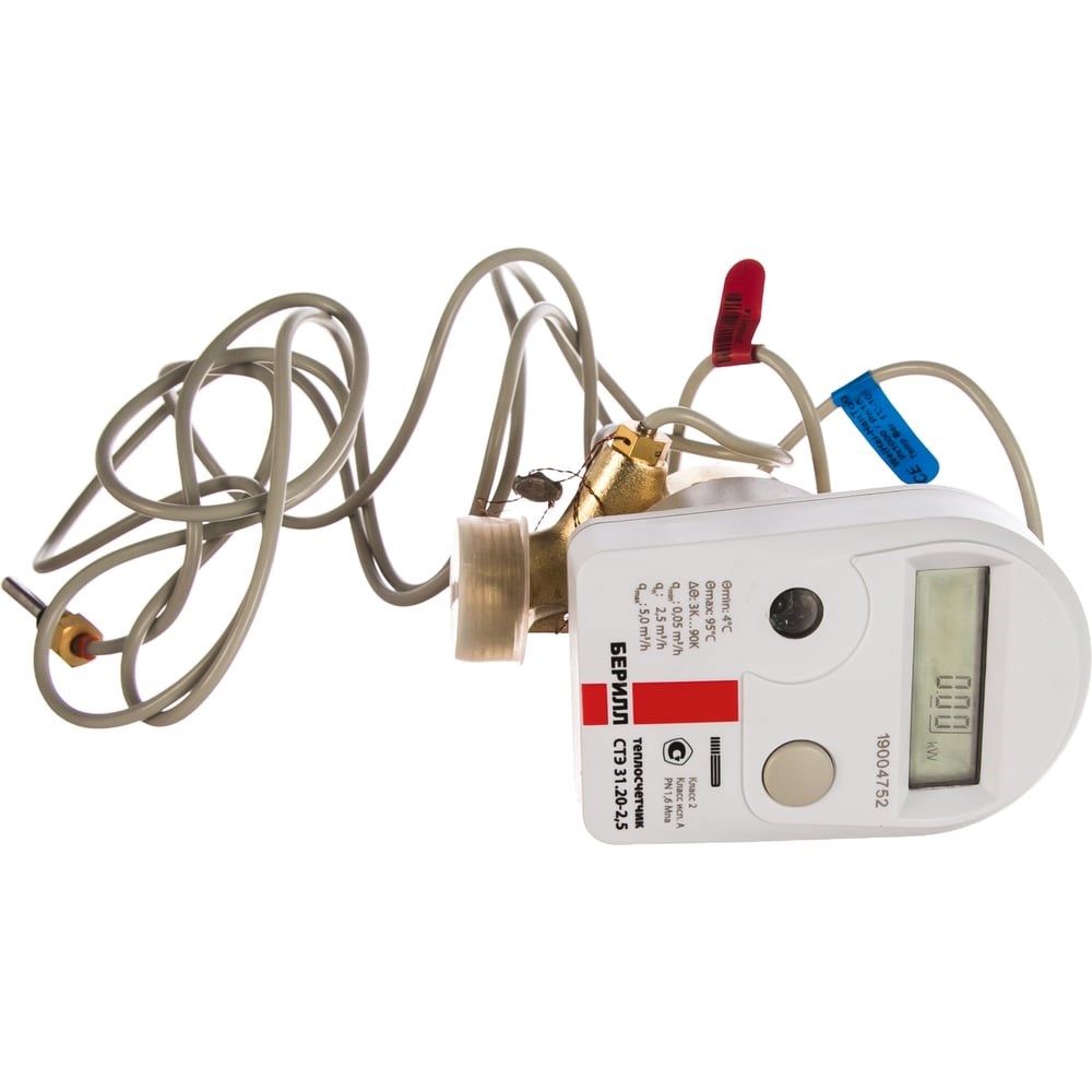 Теплосчетчик Ителма СТЭ 31 БЕРРИЛ с КМЧ СТЭ 15, Qn2,5 предназначен для измерения и регистрации переданной тепловой энергии (количества теплоты), объёма теплоносителя и других параметров теплоносителя в закрытых водяных системах отопления. Имеет два исполнения:  для установки в подающий трубопровод, в обратный трубопровод. Три типоразмера с номинальным значением расхода – 0,6 м3/ч, 1,5 м3/ч, 2,5 м3/ч. Непосредственное визуальное отображение текущей и архивной информации потребления количества теплоты (удобный ЖК­-индикатор большого размера). В счетчиках сохраняются и отображаются значения количества теплоты за последние 38 месяцев. Для интеграции в системы учета ресурсов (АСКУЭ) имеются варианты исполнения с импульсным выходом,  M­-bus шиной, RS 485, LoRaWAN или без внешнего интерфейса. Соответствуют техническим требованиям ГОСТ Р 1434-1-2011 «Теплосчетчики» и изготавливаются по техническим условиям ТУ 4218-003-17331698-2017.