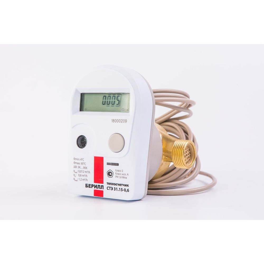 Теплосчетчик Ителма СТЭ 31 БЕРРИЛ с КМЧ СТЭ 15, Qn0,6 предназначен для измерения и регистрации переданной тепловой энергии (количества теплоты), объёма теплоносителя и других параметров теплоносителя в закрытых водяных системах отопления. Для установки в подающий трубопровод. Три типоразмера с номинальным значением расхода – 0,6 м3/ч, 1,5 м3/ч, 2,5 м3/ч. Непосредственное визуальное отображение текущей и архивной информации потребления количества теплоты (удобный ЖК­-индикатор большого размера). В счетчиках сохраняются и отображаются значения количества теплоты за последние 38 месяцев. Для интеграции в системы учета ресурсов (АСКУЭ) имеются варианты исполнения с импульсным выходом, M­-bus шиной, RS 485, LoRaWAN или без внешнего интерфейса. Соответствуют техническим требованиям ГОСТ Р 1434-1-2011 «Теплосчетчики» и изготавливаются по техническим условиям ТУ 4218-003-17331698-2017.