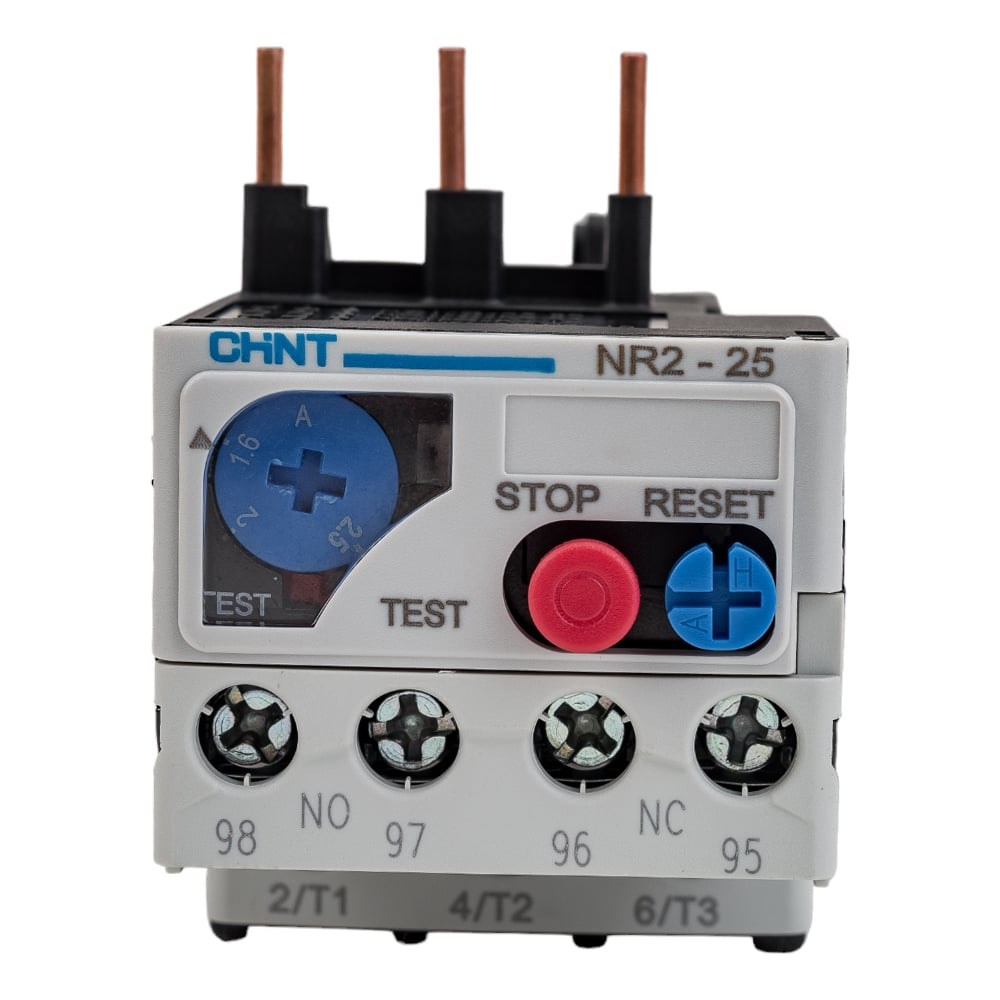 Тепловое реле CHINT NR2-25 1.6-2.5А (R) 268131 используется для защиты от перегрузки и обрыва фазы для двигателей переменного тока с частотой 50/60 Гц, напряжением до 690 В. Термореле также обеспечивает термокомпенсацию, индикацию действия, автоматический и ручной сброс, функции остановки и проверки. Отличается стабильностью и надежностью работы. Термореле может подключаться к контакторам или устанавливаться отдельно. Дополнительные характеристики: Способ монтажа - непосредственное крепление. Класс защиты - 10А. Наибольший ток - 25 А. Наличие возможностей ручного или автоматического (самовозврата) повторного включения.