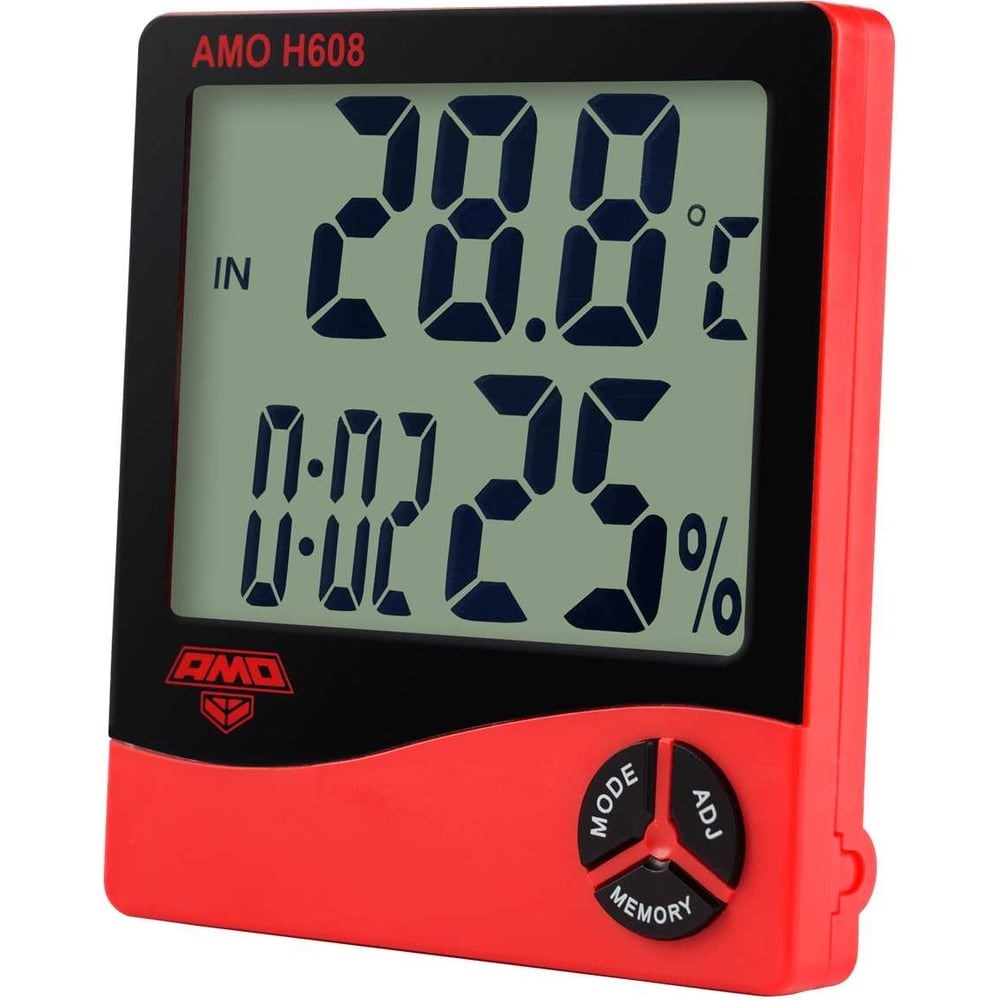 Цифровой термогигрометр AMO H608 удачно сочетает измерение влажности и температуры воздуха с функционалом цифровых часов. Модель может определять эти параметры в широком диапазоне и с высокой точностью. Так, например, погрешность значения температуры не превышает одного градуса. Дома этот прибор поможет создать комфортный и здоровый климат, а в профессиональной деятельности термогигрометр применяют для решения целого ряда задач, куда входят: контроль режима хранения на складах и в архивах; оценка параметров климата в жилых, учебных и рабочих помещениях; поддержание оптимальной среды в лаборатории; контроль технологических процессов, например сушки и др. Два варианта установки Электронный термогигрометр AMO H608 можно поставить на стол или другую поверхность, для этого есть откидная подставка. На задней стороне корпуса предусмотрена петля для монтажа на стену. Таким образом, нужная информация всегда будет перед глазами. MAX/MIN Прибор автоматически фиксирует максимальные и минимальные значения обоих параметров, полученные с момента последнего сброса. Функция позволяет с одного взгляда понять, укладываются ли результаты в стандарты и допуски. Высокая наглядность Большой дисплей, на котором большими цифрами отображаются параметры температуры и влажности, делает работу с устройством легкой и удобной. Для считывания показаний не обязательно подходить вплотную - крупные символы видны издалека.