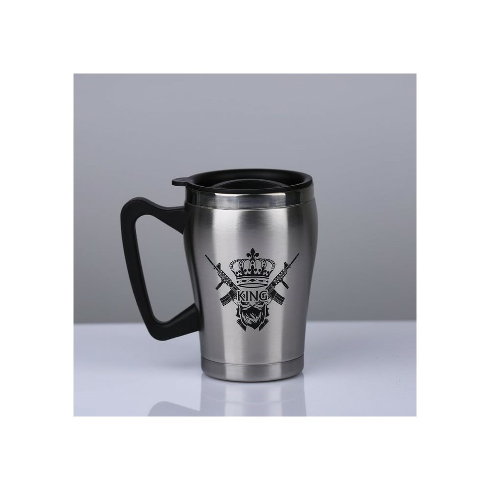 Термокружка Мастер К King с крышкой, 350 мл, 10x12 см 5156542 пригодится во время поездок, в походах, дома и на работе. Ручка комфортно лежит в руке, не скользит. Изделие сделано из нержавеющей стали, пластика и силикона. Металл легко моется. Герметичная крышка не протекает, обеспечивает теплоизоляцию.