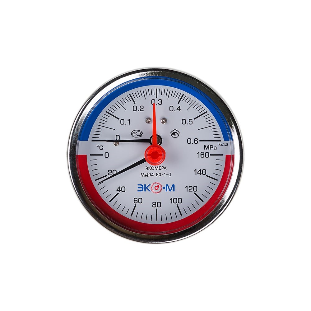 Термоманометр Экомера МД04 - комбинированный прибор, предназначенный для измерения температуры и избыточного давления неагрессивных к медным сплавам сред в системах теплоснабжения и водоснабжения.