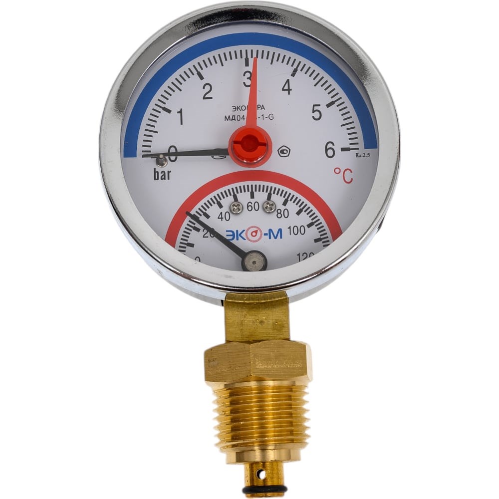 Термоманометр Экомера МД04 - комбинированный прибор, предназначенный для измерения температуры и избыточного давления неагрессивных к медным сплавам сред в системах теплоснабжения и водоснабжения.Все приборы поверены и внесены в АРШИН.