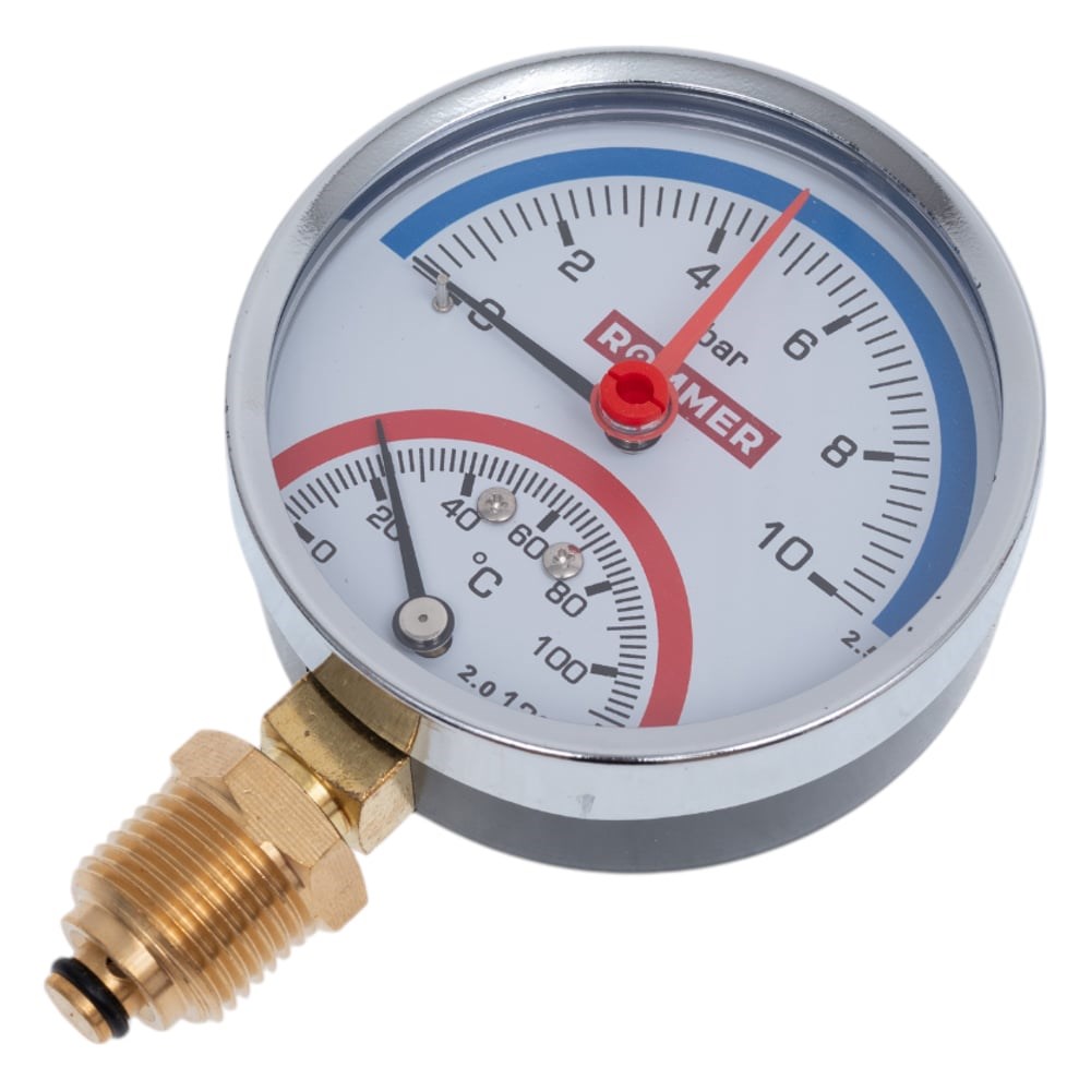 Термоманометр в комплекте с автоматическим запорным клапаном ROMMER радиальный rim-0006-801015 корпус dn 80 мм 1/2", 0...120c, 0-10 бар RG00929SFHLPND