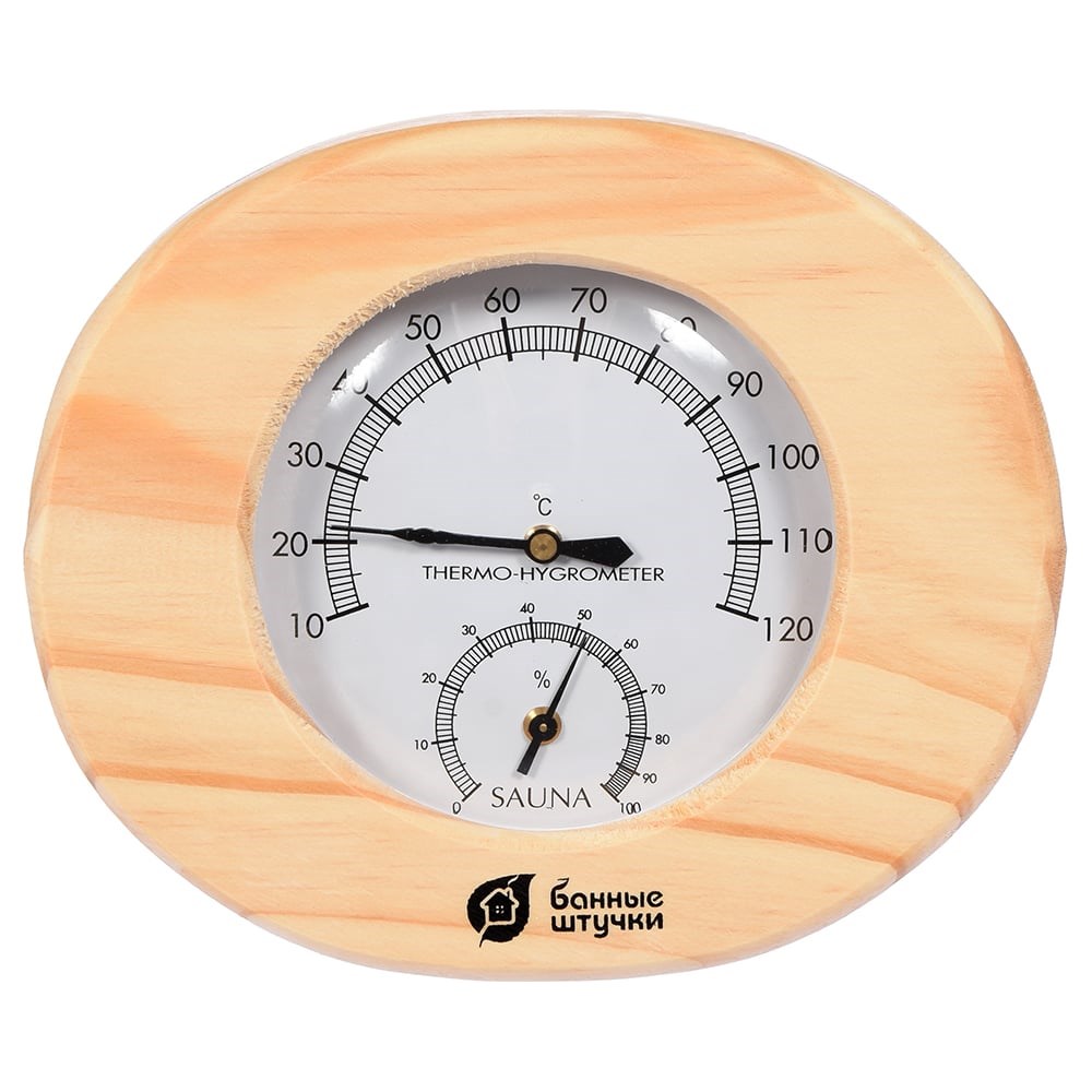 Термометр с гигрометром Банные штучки Банная станция, овальный, 16х14х3 см 18022 помогает контролировать температуру в парной, чтобы проводить время с максимальным комфортом и без вреда для здоровья. Изделие выполнено из качественных материалов, прослужит долгое время.