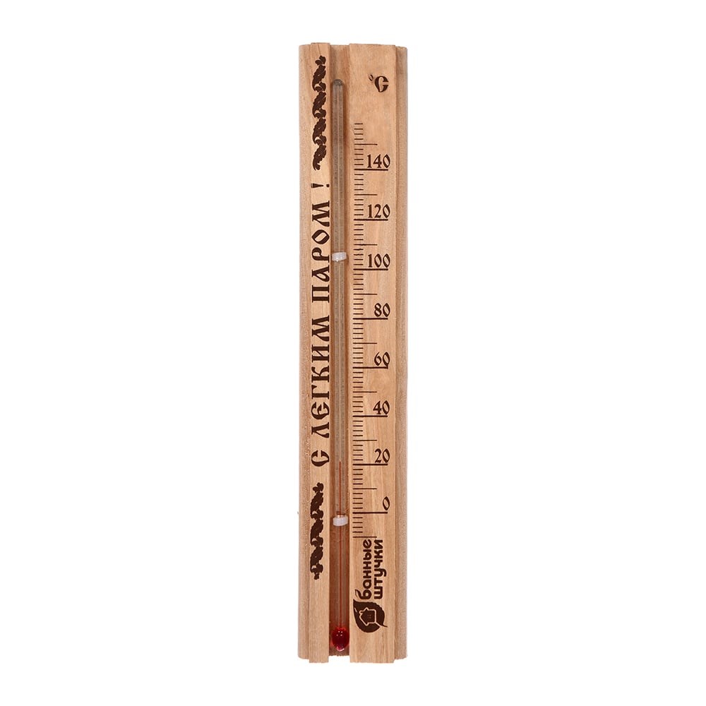 Термометр для бани и сауны Банные штучки С легким паром, 21x4x1.5 см 18018 предназначен для измерения температуры воздуха. Изделие выполнено из дерева, является экологически чистым. Модель хорошо впишется в любой интерьер.