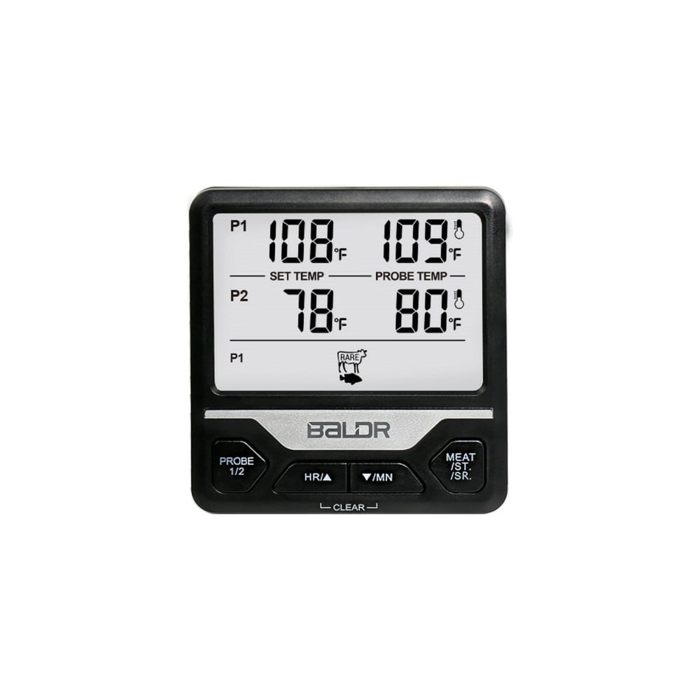 Термометр для мяса и пищевых продуктов BALDR B0373T2 поставляется с двумя щупами, которые можно использовать для сравнения типов продуктов. Благодаря конструкции несъемного зонда и четкому ЖК-дисплею с выделением и считыванием цветовой температуры даже в самых темных условиях. Температура отображается и по Цельсию, и по Фаренгейту. Этот кулинарный термометр также содержит таймер. Если вы не являетесь профессионалом на кухне или вам нужна небольшая помощь, мы включаем предустановленные температуры. Легко хранить в любом месте на кухне с подставкой, магнитной подложкой и отверстием для подвешивания.