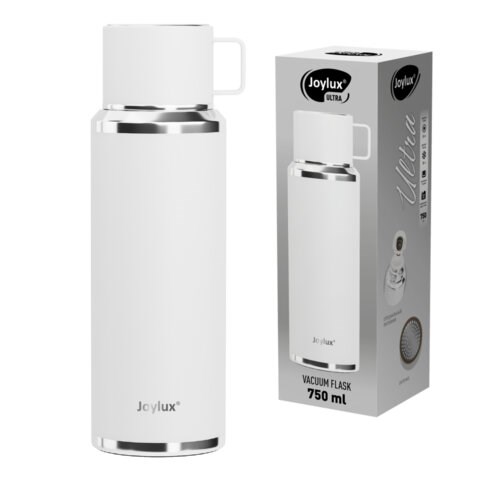 Термос 0,75 л JOYLUX (ДЖОЙЛЮКС) ULTRA, нержавеющая сталь SUS316, крышка/кружка, питейник, сито, белый матовый, 700315