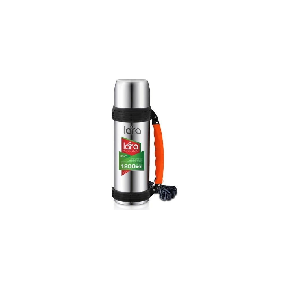 Термос Lara 1,2л, ручка, кнопка, ремешок, двойные стенки, крышка-стаканчик, нержавеющая сталь LR04-03 подходит для походов и путешествий. Двойные стенки отлично удерживают тепло и холод в течение длительного времени. Очень удобно в походных условиях использовать крышку в качестве чашки.