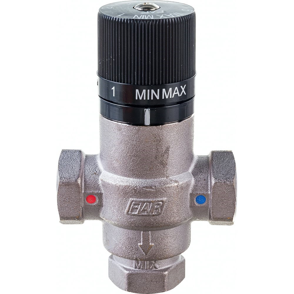 Термосмеситель FAR FA 3950 12 устанавливаются на байпасе перед твердотопливными котлами, чтобы исключить образование конденсата на их греющих поверхностях. Клапан поддерживает температуру теплоносителя на входе в котел на уровне заданной температуры. Специальная ручка позволяет регулировать температуру воды на выходе. Минимальная установочная температура составляет 25°С, а максимальная 65°С. Клапан изготовлен из латуни, что говорит о его надежном креплении и долгом сроке службы.