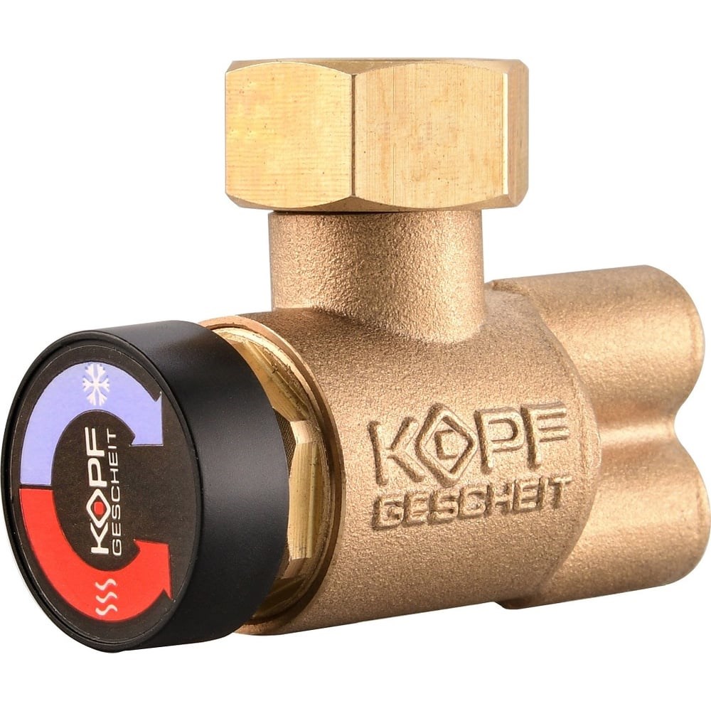 Термосмесительный вентиль Kopfgescheit KR535 разработан для любых труб диаметром 1/2". Оснащен обратными клапанами для горячей и холодной воды, имеет малые размеры. Регулировка смешиванием осуществляется заменяемым керамическим картриджем. Подходит для скрытого монтажа, когда отсутствует необходимость в регулярной подстройке температуры воды, при этом разводка воды может осуществляться как открытым (предпочтительно), так и закрытым способом.