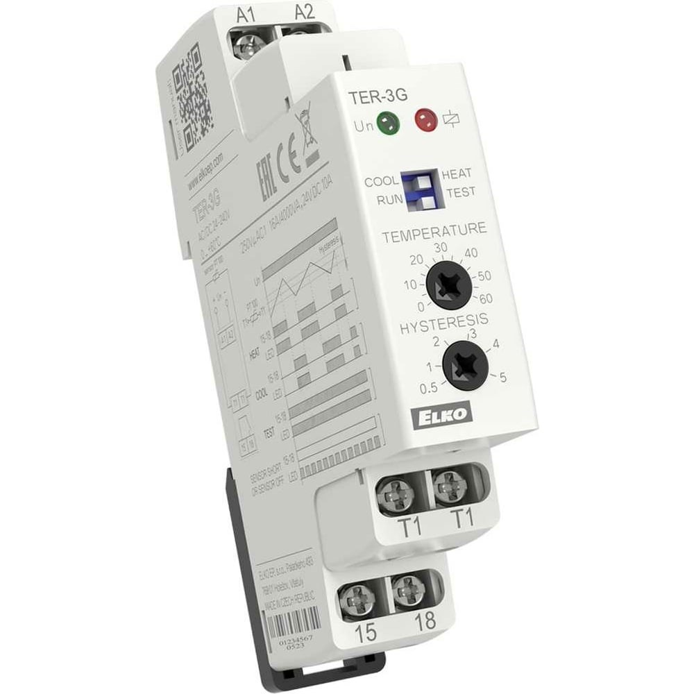 Дополнительные характеристики термостата ELKO EP TER-3G 0.. +60 C AC / DC 24-240V 00000000100: Применяется для контроля температуры, например в распределительном щите, в отопительных и охлаждающих системах, а также жидкостей, моторов, оборудования, открытых помещений и т.п. Функция контроля короткого замыкания. Настройка гистерезиса коммутации (чувствительность) потенциометром в диапазоне 0.5 - 5 °C. Выбор внешнего температурного сенсора с двойной изоляцией стандартных длин 3, 6 и 12 м. Количество контактов: 1x коммут. 16 A (AgSnO2). Защита: IP40 со стороны лицевой панели / IP10 клеммы.