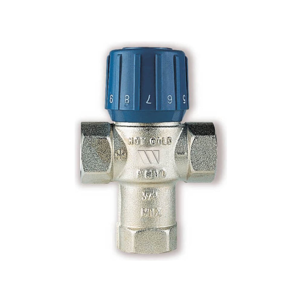Термостатический подмешивающий клапан для теплого пола. 10 позиций предустановки и фиксированный байпас между входом обратки и и выходом смешанной воды против превышения мах. допустимой температуры. Диапазон регулирования 25 – 50°С. Макс. перепад давления между входом горячей воды и холодной - 2 бара. Таблица настройки температуры смешивания приведена для температуры 60 градусов на входе "плюс", и температуры 25 градусов на входе "минус". Контролируйте температуру смешанной воды с помощью термометра. Точность смешивания клапана 1-2 °С.