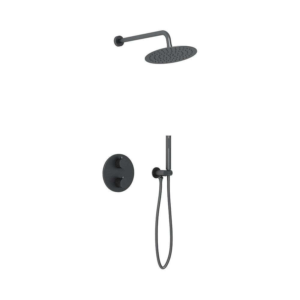 Душевой комплект VINCEA термостатический встраиваемый, двухрежимный, черный VSFW-101TMB