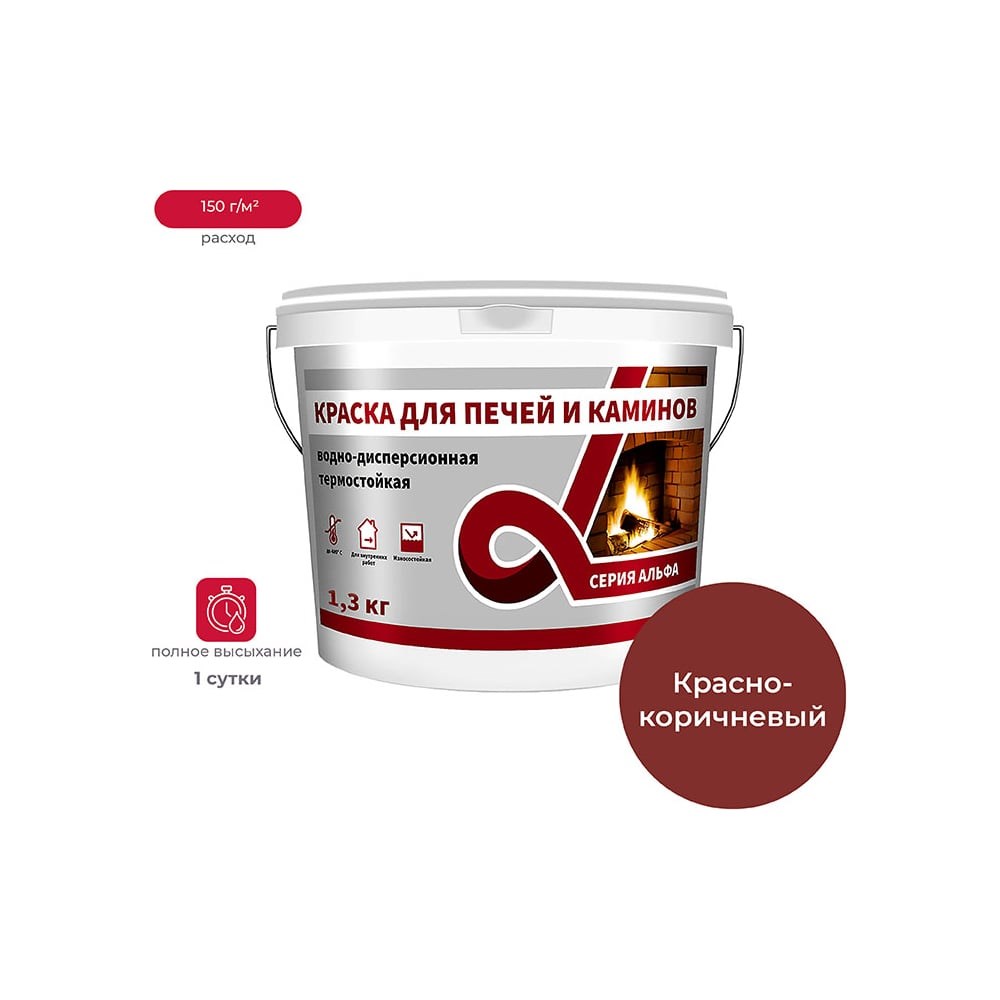 Применяется для окраски печей, каминов, дымоходов: оштукатуренных, каменных и кирпичных, в том числе со старым минеральным покрытием. Не содержит органических растворителей. Расход: ориентировочный расход на однослойное покрытие поверхности площадью 1 м2 составляет 150 г в зависимости от типа, состояния и структуры поверхности. Высыхание: при температуре (20±2) °С и относительной влажности воздуха (65±5) % между слоями - 1 ч, полное высыхание - 1 сутки, заявленная термостойкость достигается за 4 суток. Время может увеличиться при других условиях сушки. Термостойкость: до 400 °С. Срок годности: 365 дней. Красно-коричневый Краска для печей и каминов термостойкая Экологически безопасная термостойкая краска, образующая покрытие на силикатной основе, предназначенное для долговременной защиты минеральных поверхностей, подвергающихся воздействию высоких температур, характерных для печей и каминов. При нагревании не меняет цвет и сохраняет свои декоративные свойства, не выделяет запахов. Высокая термостойкость до 400 °С.
