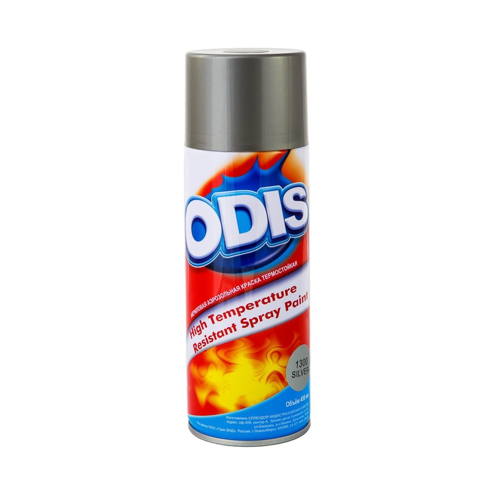 Краска-спрей термостойкая ODIS серебряный 500С 1300 - быстросохнущая универсальная аэрозольная акриловая краска для защитной и декоративной окраски, снаружи и внутри помещения. Применяется для окраски печей, котлов, духовок, выхлопных труб, двигателей, суппортов и прочего высокотемпературного оборудования.