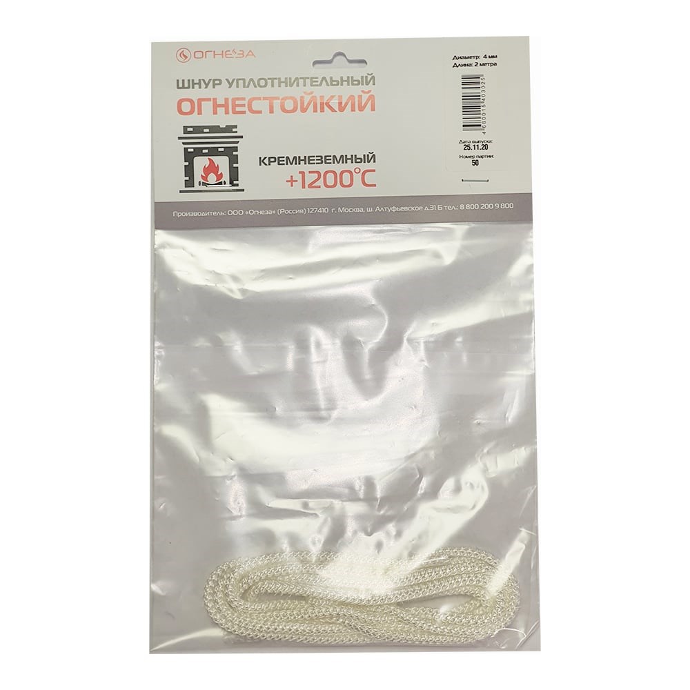 Термостойкий кремнеземный шнур Огнеза ШКН 4 мм х 2 м 107488 используется в качестве огнезащитного уплотнительного материала, для создания теплоизоляционной защиты аппаратуры, промышленных и бытовых холодильников, бытовых газовых и электрических плит, а также для герметизации притворов топок, печей, котлов, каминов, для соединений воздуховодов.