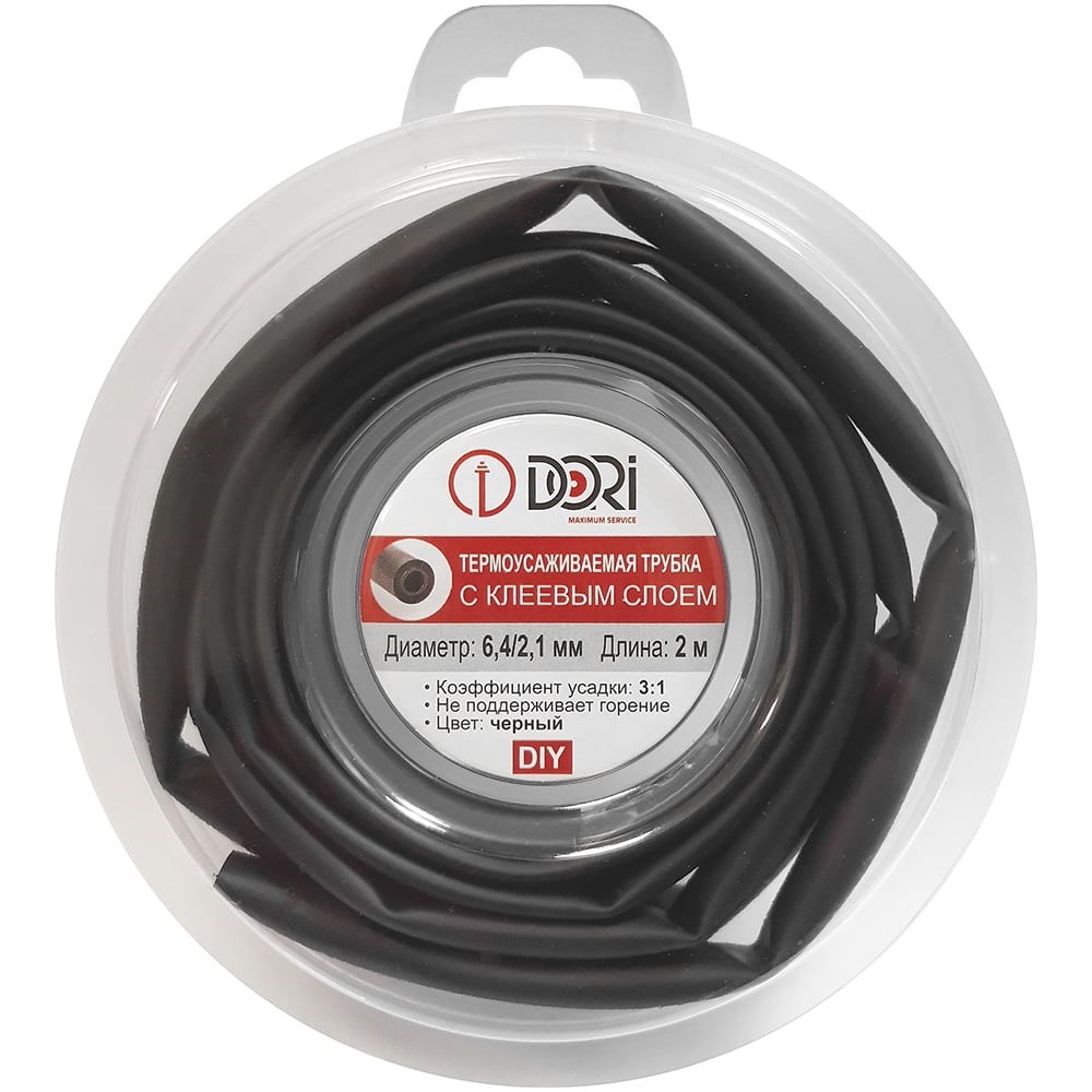 Термоусаживаемые трубки с клеевым слоем предназначены для герметизации, электроизоляции и защиты от коррозии.Термоусаживаемая трубка DORI - это идеальное решение для ваших нужд. Термоусаживаемая черная трубка DORI с клеевым слоем идеально подходит для изоляции электропроводки.Надежное решение для вашего проекта. Трубка упакована в многоразовый круглый блистер, который очень удобен для использования. Она изготовлена из не горючего материала, что обеспечивает безопасность при использовании.Основная особенность этой трубки - коэффициент усадки 3:1. Это означает, что при усадке трубки термофеном, она сжимается втрое меньше.
