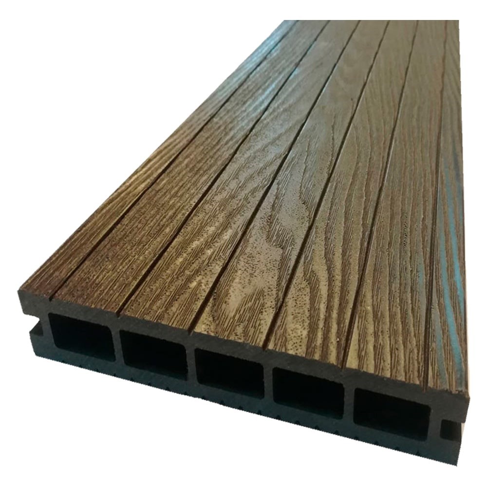 Террасная доска из дпк с 3d-тиснением под дерево Eno 4657783910062 производится из древесной муки лиственных и хвойных пород, высококачественных полимеров и многокомпонентных стабилизаторов. Наша террасная доска из древесно-полимерного композита имеет 3D-тиснение под дерево - с одной стороны и антискользящее рифление antislip - с другой стороны. Обладая такими качествами, как долговечность, прочность, легкость и скорость монтажа, данный материал получил широкое применение в строительстве и благоустройстве.
