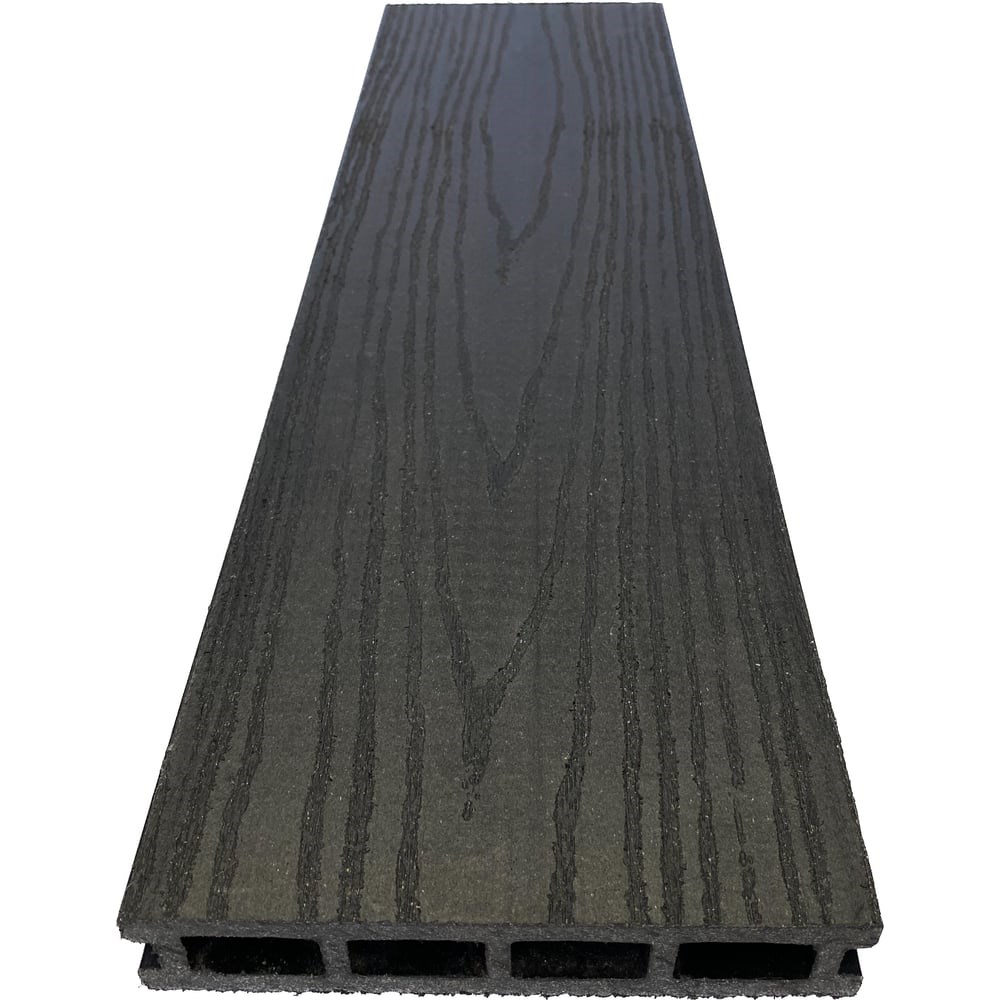 Террасная доска MasterDeck Classic Антрацит узкий вельвет/тиснение под дерево 3шт 10623300 подходит для террас и веранд как частного использования, так и на коммерческих объектах. Обладает повышенной прочностью, жесткостью, устойчивостью к точечным нагрузкам. В зонах с большой проходимостью рекомендуется применять доску с поверхностью типа «вельвет». Она обеспечивает лучшие противоскользящие свойства и лучше маскирует царапины и потертости, которые неизбежно появятся на эксплуатируемой на улице доске. Поверхность «тиснение» рекомендуется применять в зонах с низкой нагрузкой. Например, около бассейна.Террасная доска представляет собой профиль толщиной 26 мм и шириной 140 мм (с учетом зазора между досками). Отдельные доски легко соединяются при помощи специальных клипс из нержавеющей стали, которые крепятся к лаге с помощью оцинкованного самореза.Площадь 1-ой доски MasterDeck 140*26*3000 - 0,42 кв.м. Вы приобретаете комплект из 3-х шт террасной доски MasterDeck.