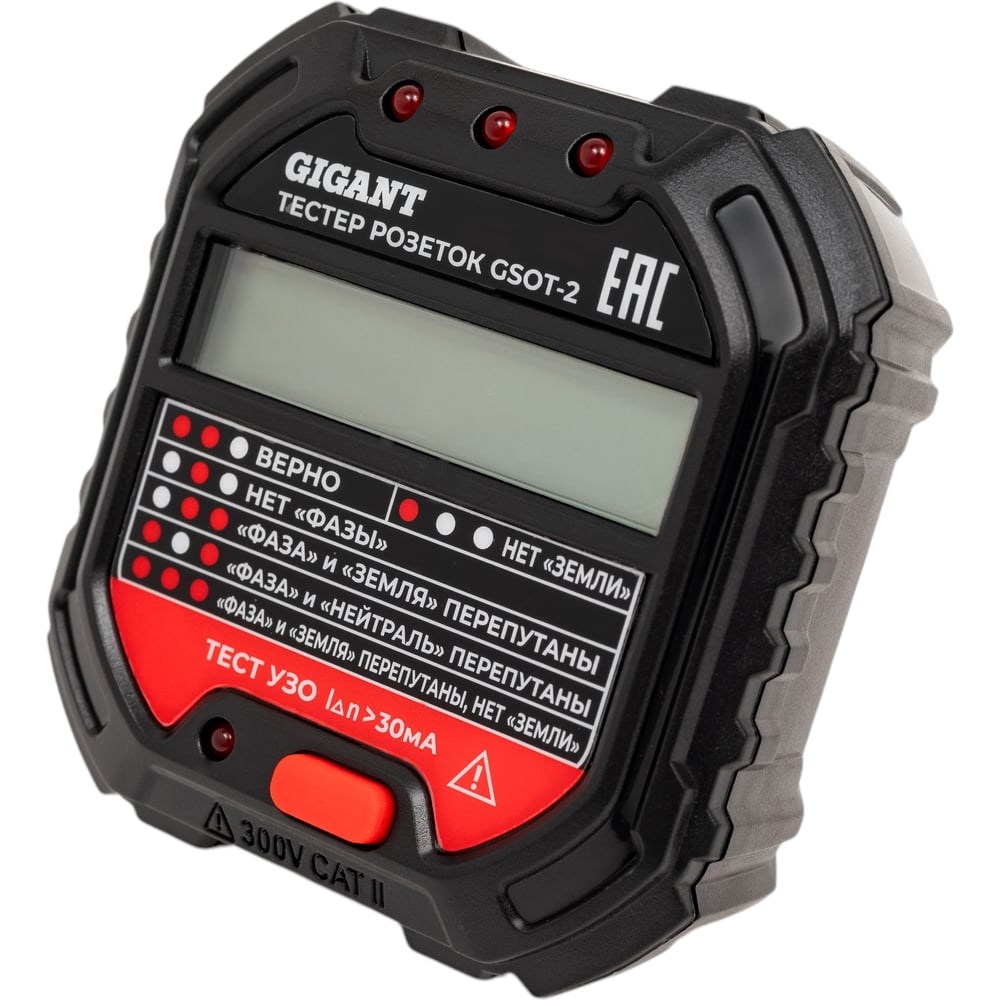 Тестер розеток и УЗО Gigant GSOT-2 включается непосредственно в розетку и не требует дополнительного питания. Изделие имеет прочный пластиковый корпус. Подходит для бытовых сетей. Оснащен ярким дисплеем. Легко читается даже в темноте.
