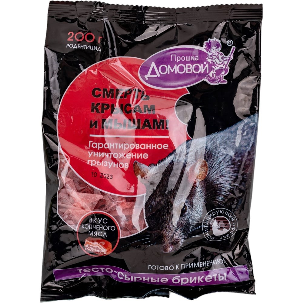Тестосырный брикет Домовой Прошка со вкусом копченого мяса, пакет 200 г УТ-00008677 обеспечивает гарантированное уничтожение серых, черных и водяных крыс, мышей. Пригодится для использования персоналом организаций, занимающихся дезинфекционной деятельностью и населением в быту. Средство имеет мумифицирующий эффект. Главным преимуществом приманки является её привлекательность для грызунов.