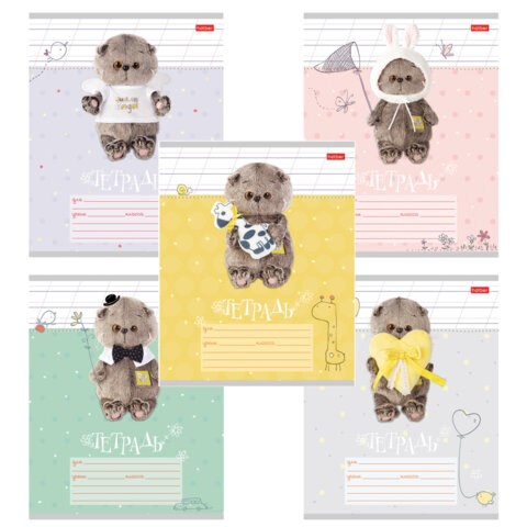 Тетрадь 12 л., HATBER косая линия, обложка картон, "Кот Басик" (микс в спайке), 051747, 12Т5В6