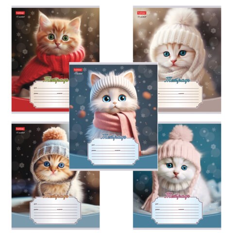 Тетрадь 12л. HATBER линия, обложка картон, Уютные котики (микс в спайке), 12Т5В2