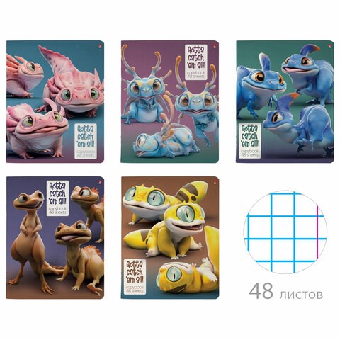 Тетрадь А5 48 л. АЛЬТ, скоба, клетка, глянцевый лак, "ГЛАЗАСТИКИ" (5 видов), 7-48-1284