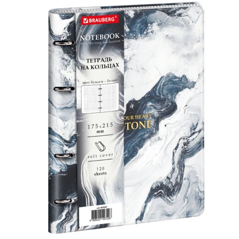 Тетрадь на кольцах А5, 175х215 мм, 120 л., под кожу, BRAUBERG VISTA, "Мрамор", 405207