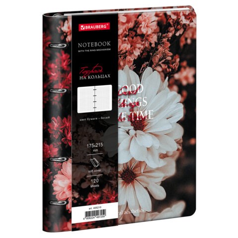 Тетрадь на кольцах А5, 175х215 мм, 120 л., под кожу, BRAUBERG VISTA, "Цветы", 405210