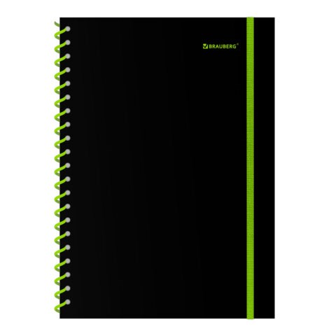 Тетрадь обложка пластик, А4 80 л., спираль пластик, резинка, клетка, BRAUBERG, черный/зеленый, 405383