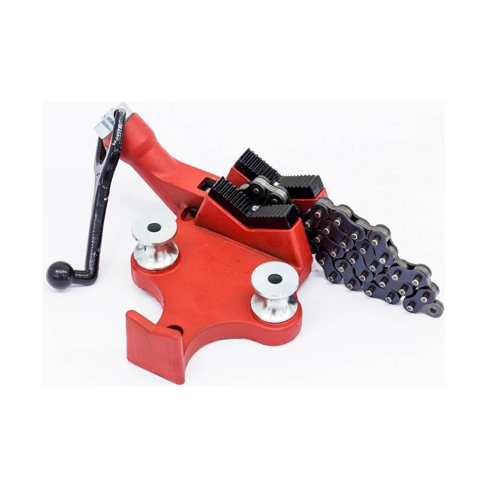 Цепные тиски для труб до 6 дюймов BREXIT 2110015 предназначены для надежной фиксации трубных конструкций, диаметром до 6 дюймов. Станок отличается надёжным и крепким захватом с помощью поворота зажимного винта. Корпус этой модели изготовлен из чугуна, а губки из закалённой стали. Есть изогнутая зажимная рукоятка, а также гибочный ролик и удобная опора для труб.