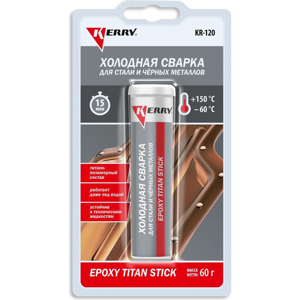 Холодная сварка сверхпрочная титанонаполненная для стали и черных металлов KERRY металлопластилин - эпоксидный клей KR-120 представляет собой массу, повышенной вязкости, состоящую из двух компонентов металлополимеров с добавлением порошка двуокиси титана, для армирования. Формула данного состава производит качественную адгезацию к цветным металлам. Это позволяет производить быстрый, гермитичный и качественный ремонт поврежденных элементов