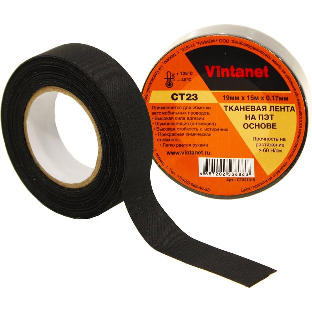 Тканевая лента на ПЭТ основе VINTANET CT23, 19 мм, 15 м CT231915 используется исключительно для обмотки автомобильных жгутов проводов. Обладает сильной устойчивостью к загрязнениям и высоким температурам, а наиболее выдающейся особенностью этой клеящей ленты на тканевой основе из химического волокна является ее высокая стойкость к истиранию.