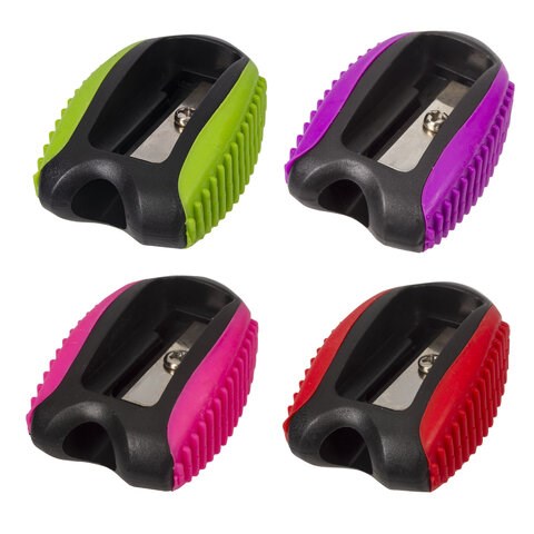 Эргономичный корпус выполнен из пластика с резиновыми вставками по бокам. Острое стальное лезвие обеспечивает быструю и легкую заточку. Карандаш затачивается аккуратно. Компактные размеры (16х25х37 мм) позволят поместить точилку в пенал, а благодаря интересной форме она не затеряется на парте или столе среди других принадлежностей.