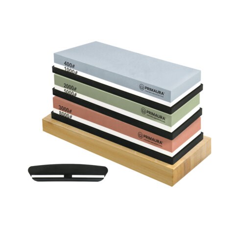 Точильный камень водный, КОМПЛЕКТ 3 шт., НАБОР 8 предметов, 400/1000/2000/3000/5000/8000 грит, PRIMAURA (ПРИМАУРА), 701629