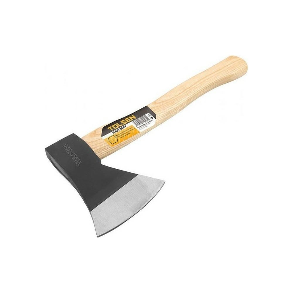 Топор TOLSEN деревянная рукоятка 600 г 25253 универсальный, предназначенный, главным образом, для работы на садовом участке и в лесу. Головка топора изготовлена из высококачественной инструментальной стали, с зонной закалкой, устойчивая к образованию трещин при ударах. Твердое лезвие обладает высокой стойкостью к износу. Рукоятка из крепкой древесины с высокой стойкостью к излому, профилированная и подогнанная по форме к ладони, для повышения комфорта работы.