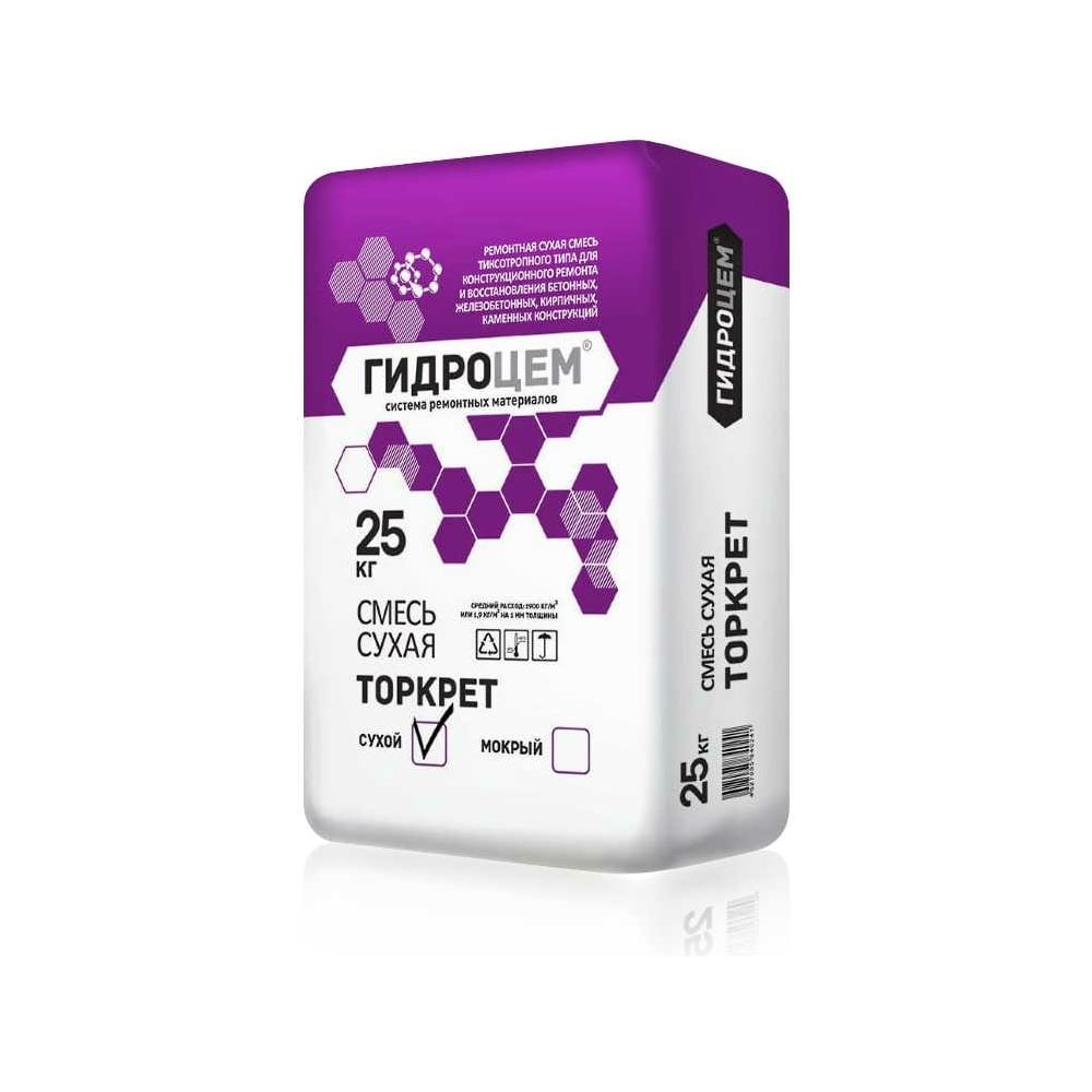 Ремонтная смесь Гидроцем Торкрет С 25 кг При смешивании сухой смеси с водой образуется высокопрочная, тиксотропная, безусадочная растворная смесь. Применяется для строительства и конструкционного ремонта резервуаров, емкостей, башен, в том числе питьевого водоснабжения. элементов конструкций и сооружений на химических предприятиях. Строительство резервуаров, емкостей, башен, в том числе питьевого водоснабжения Строительство элементов гидротехнических сооружений Гидроизоляция гидротехнических сооружений Окончательная отделка штолен, тоннелей, шахт Крепление строительных котлованов, скальных стен и откосов Подведение контропор и фундаментов под сооружения.