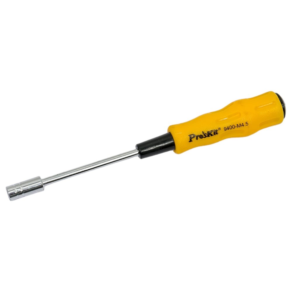 Ключ, торцевой ProsKit 19400-M4.5 00072648 С00036737 оснащается удобной рукояткой с рельефной поверхностью. Изделие имеет высокую прочность за счет надежного закрепления стержня и рукояти. Инструмент подойдет для работ с мелким шестигранным крепежом.