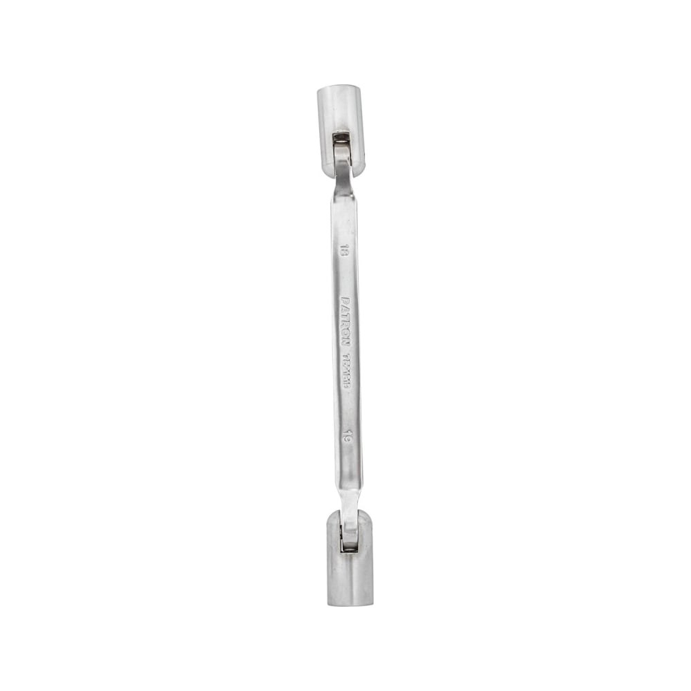 Ключ торцевой шарнирный 18x19 мм от бренда PATRON - это удобный инструмент для работы с крепежными элементами, где требуется доступ к труднодоступным местам. Он изготовлен из хромованадиевой стали, что обеспечивает высокую прочность и устойчивость к коррозии. Шарнирный механизм позволяет быстро и легко поворачивать ключ в любую сторону, что особенно полезно при работе с крепежами в труднодоступных местах. Ключ имеет удобную ручку для удержания, которая предотвращает скольжение руки и обеспечивает надежный захват. Данный ключ подходит как для профессионального, так и для любительского использования. Он может использоваться для монтажа и демонтажа различных крепежных элементов, таких как болты, гайки, винты и т.д.