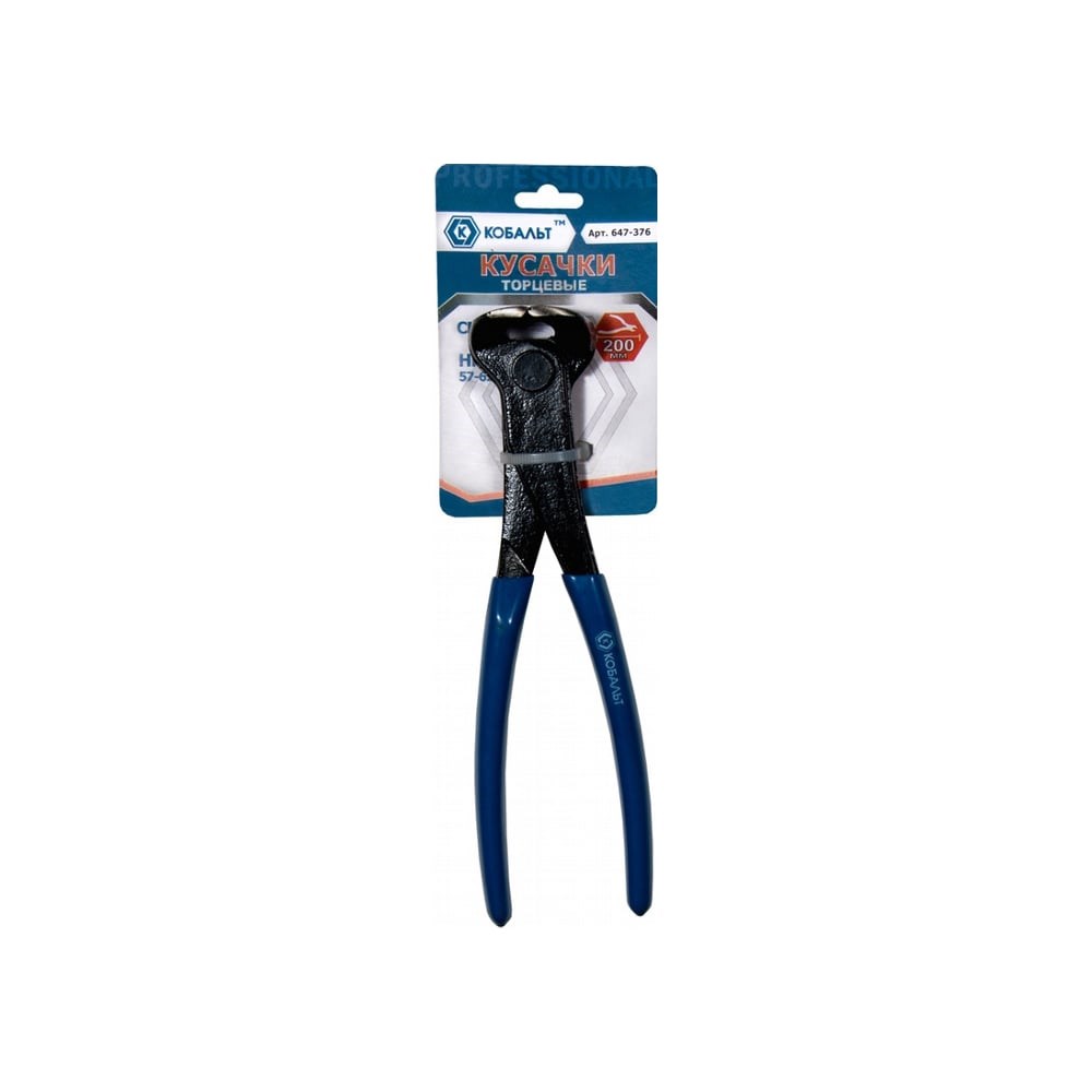 Кусачки торцевые 200 мм CR-V КОБАЛЬТ 647-376 ручной инструмент, применяется для ремонтных и слесарных работ. Губки изделия сконструированы под специальным углом, для удобства обработки предметов. Для практичности и прочности во время работы приспособление выполнено из первоклассного материала и закалено до твердости 57-62 HRC. Эргономичная форма рукояток защищает от выскальзывания во время эксплуатации.