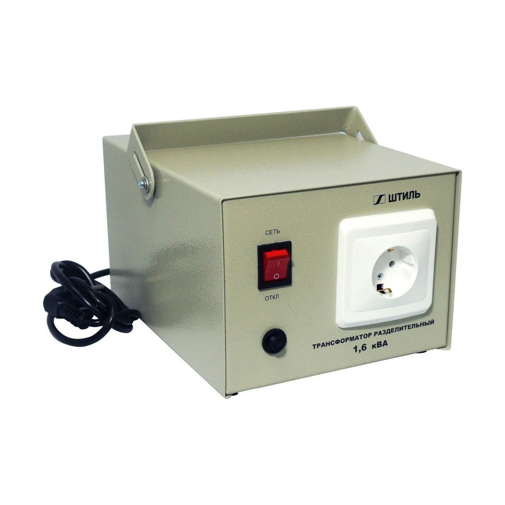 Трансформатор Штиль U вход 230 220, в корпусе ОСЗМ Р 220/220-1,6-50 представляет собой однофазный разделительный трансформатор в корпусе, предназначенный для электропитания приборов, инструментов, аппаратуры и устройств переменным током напряжением 220 (230) В, от стандартной электросети с напряжением 220 (230) В, при обеспечении гальванической развязки цепей питания нагрузки от электросети. Первичная и вторичные обмотки разделительного трансформатора не имеют гальванической связи и разделены экранирующей обмоткой, поэтому разделительный трансформатор выполняет также функцию фильтра импульсных помех, возникающих в питающей сети. Основным назначением изделия является повышение уровня безопасности работающих электрических приборов, соответственно - снижение уровня электротравматизма. Изделие может работать совместно со стабилизаторами напряжения и источниками бесперебойного питания переменного тока. Изделие состоит из следующих основных частей: металлический корпус, трансформатора разделительного на тороидальном сердечнике, выключатель «СЕТЬ», автомат защиты (для защиты изделия и подключённой к нему нагрузки от превышения потребляемого тока), сетевой шнур с евровилкой.